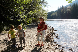 Við sömu á, bræðurnir sjá eitthvað spennandi fyrir neðan